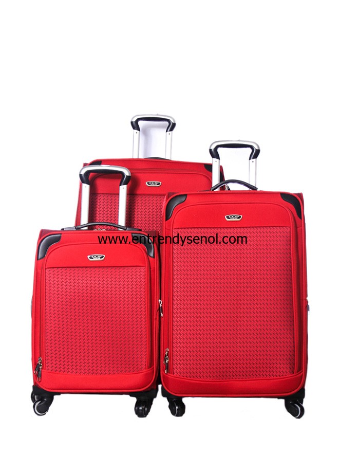 kırmızı kaz ayağı desen valiz seti ÇÇS