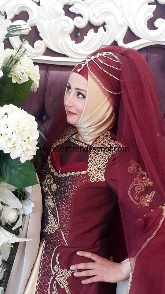 bordo gold en güzel tesettür nişan başı